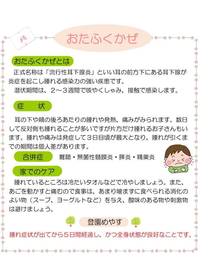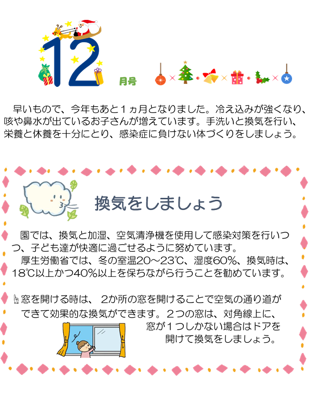 園のホームページで在園児が罹患した感染症をお知らせしています。検索方法は、